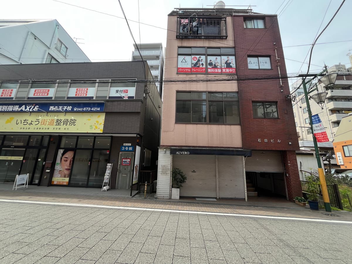 4少し進むと左手の「石田ビル」の3階にかたぎり塾 西八王子店がございます。 手前の階段か、奥のエレベーターから3階にお上がりください。