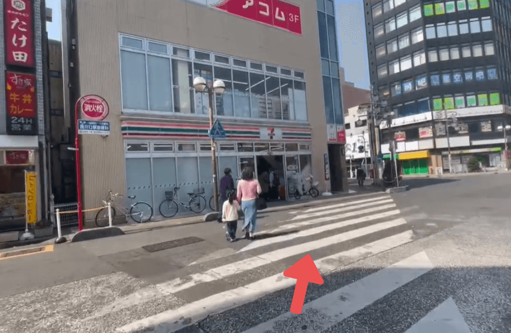 3ロータリーを沿いましたら『セブン-イレブン 西川口駅西口店』目の前の横断歩道を渡ります。