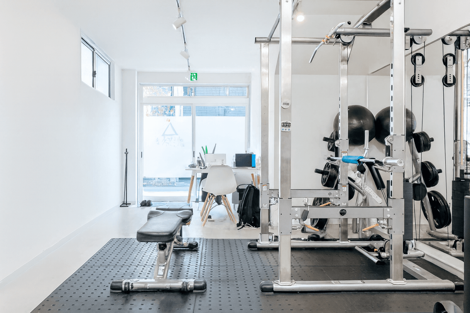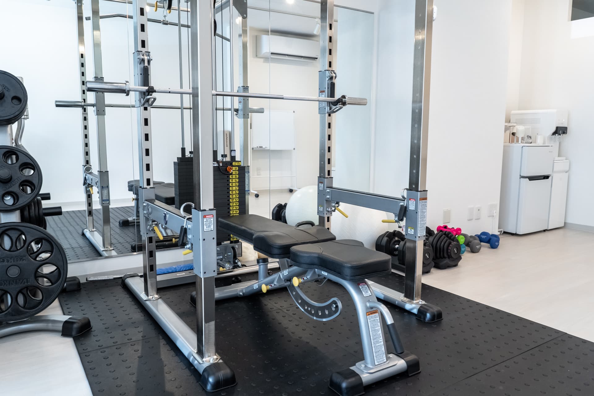 かたぎり塾大井町店は、ジムとは思えない白を基調とした清潔空間で、心地よくトレーニングができる環境づくりを目指しています。