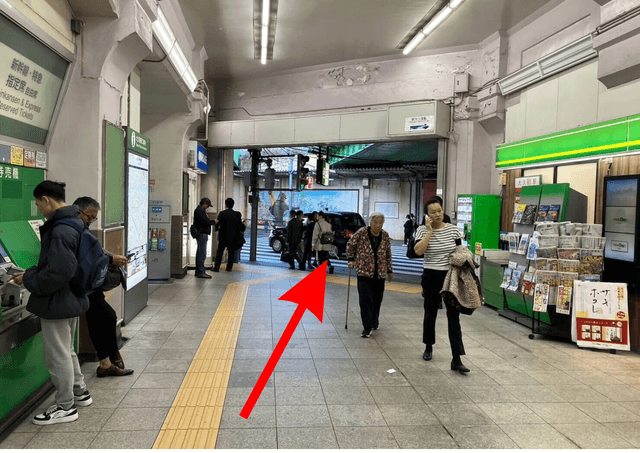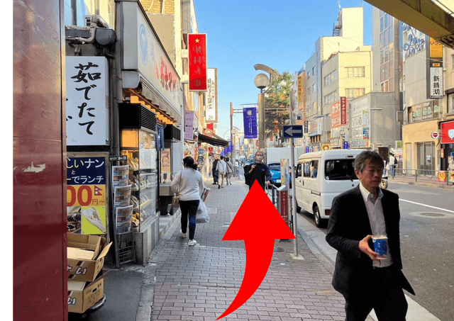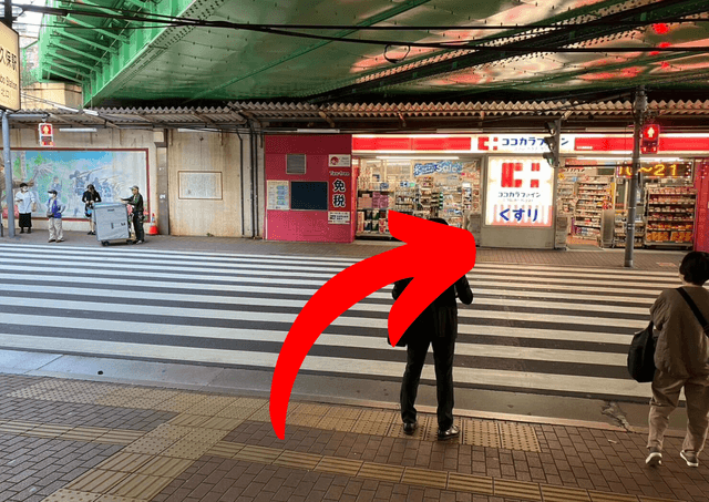 2横断歩道を渡り、「ココカラファイン駅前店」を右へ直進します