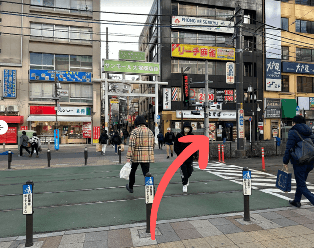 - 2横断歩道を渡り右に進みます