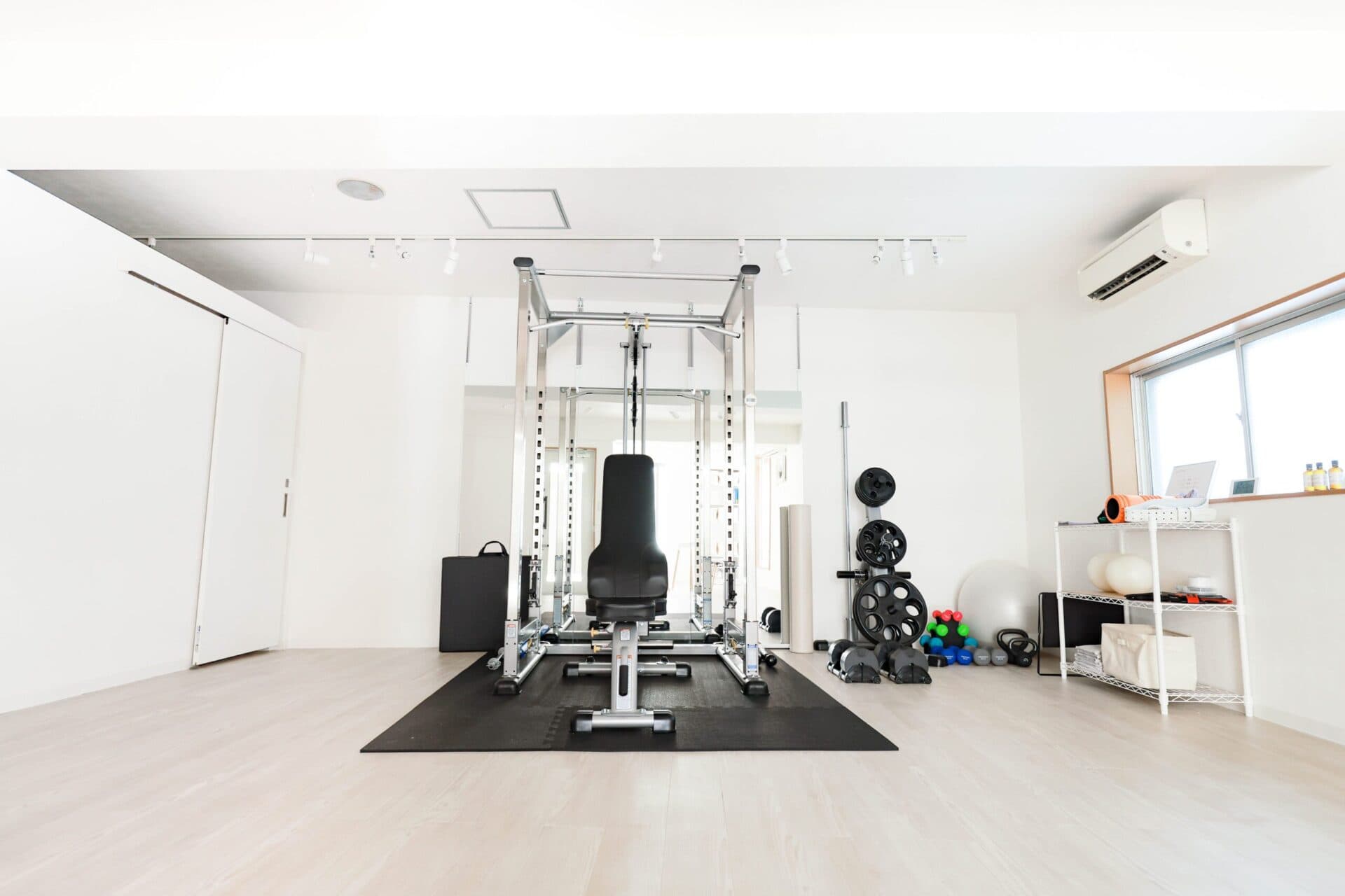 かたぎり塾 大山店は、白を基調とした綺麗で清潔なパーソナルジムで、気持ちよくダイエットやボディメイクが行なえます。