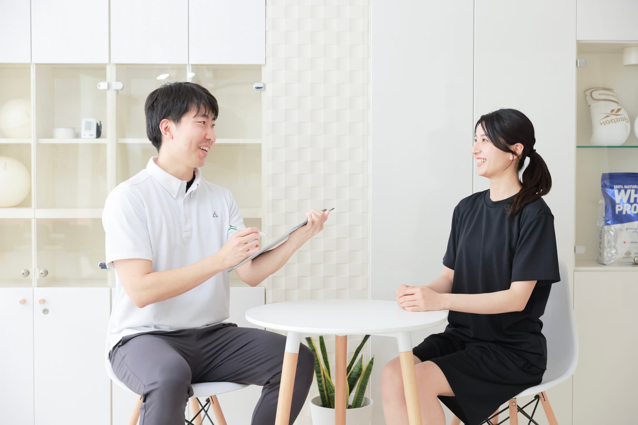 トレーニングの感想を簡単にヒアリングし、日々の生活に必要なアドバイスなどをお伝えします。