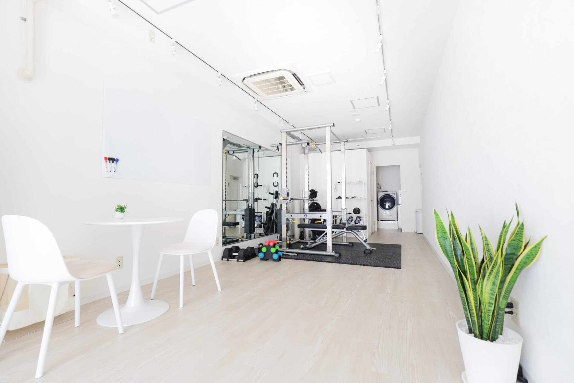 かたぎり塾 鷺ノ宮店は、白を基調とした綺麗で清潔なパーソナルジムで、気持ちよくダイエットやボディメイクが行なえます。