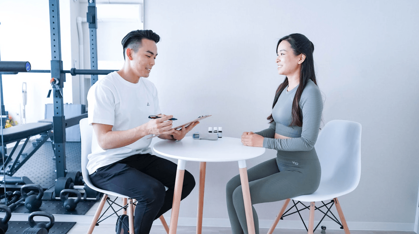 トレーニングの感想を簡単にヒアリングし、日々の生活に必要なアドバイスなどをお伝えします。