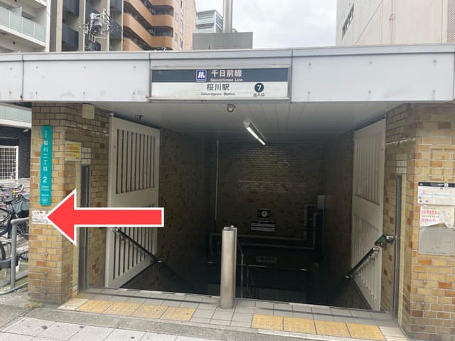 1大阪メトロ千日前線 桜川駅 7番出口を出てすぐ右へ。