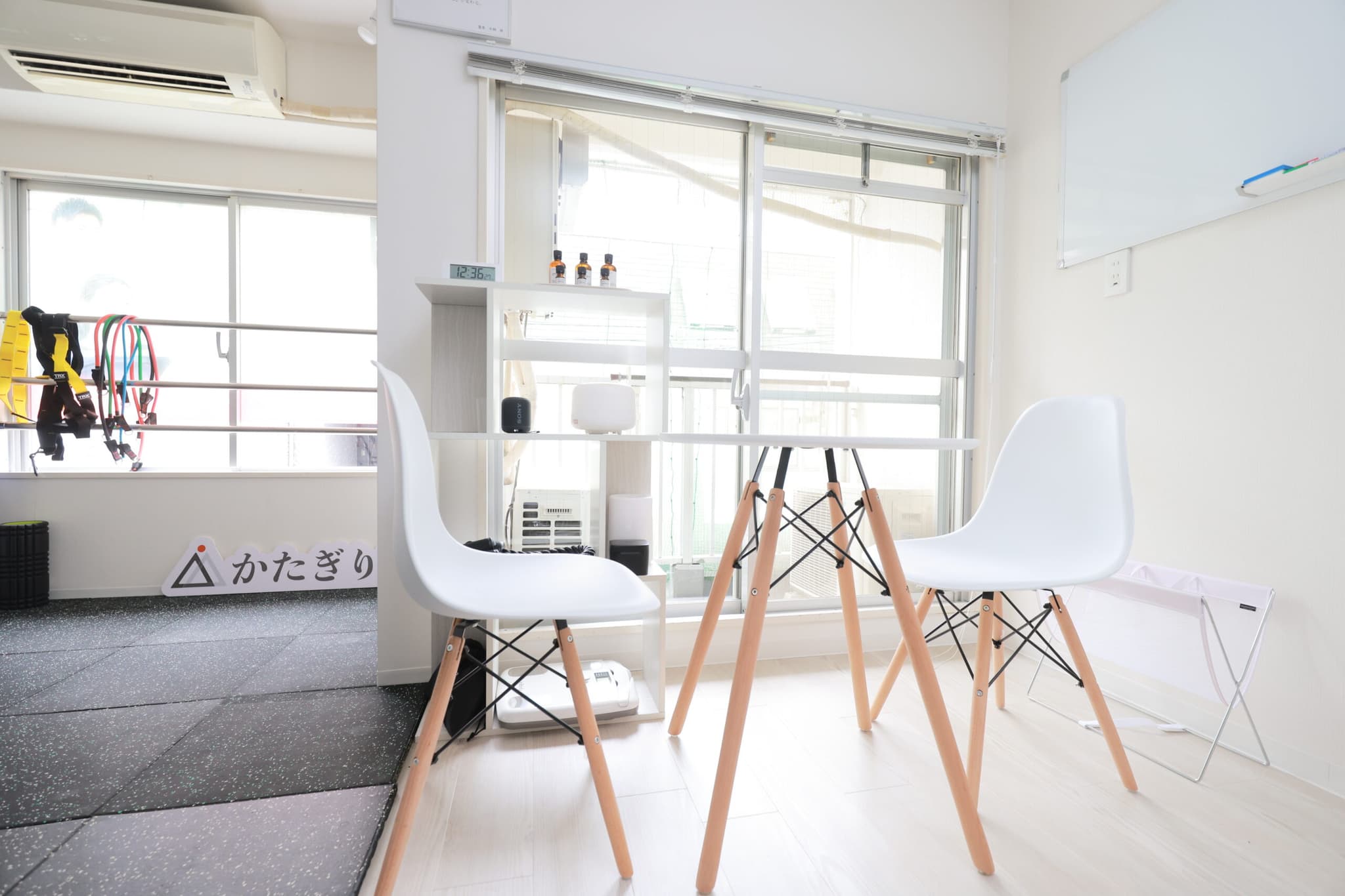 かたぎり塾 下北沢店、白を基調とした綺麗で清潔なパーソナルジムで、気持ちよくダイエットやボディメイクが行なえます。