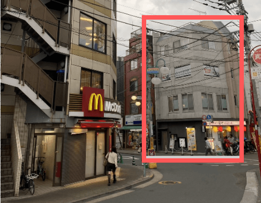 2進むと、かたぎり塾 下丸子店が入っている建物が見えます