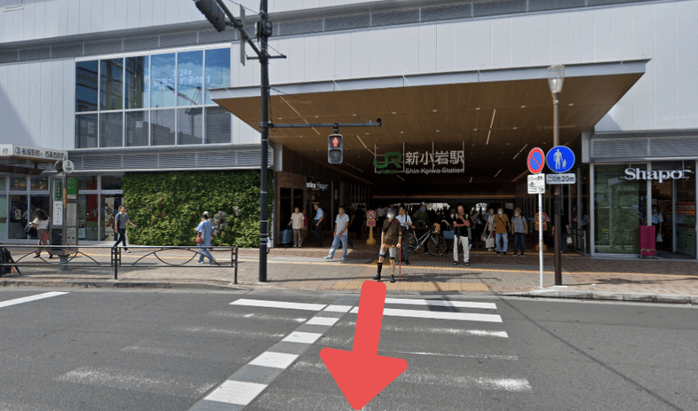 1 中央・総武線線 新小岩駅 東側口を出て、信号を渡り直進しまっす。