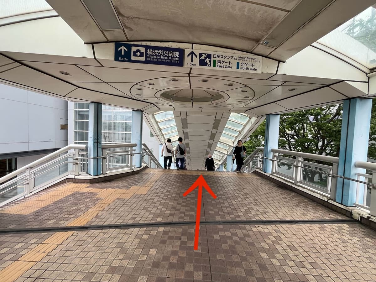 1駅を出ます。出口は日産スタジアム方面出口になります。
