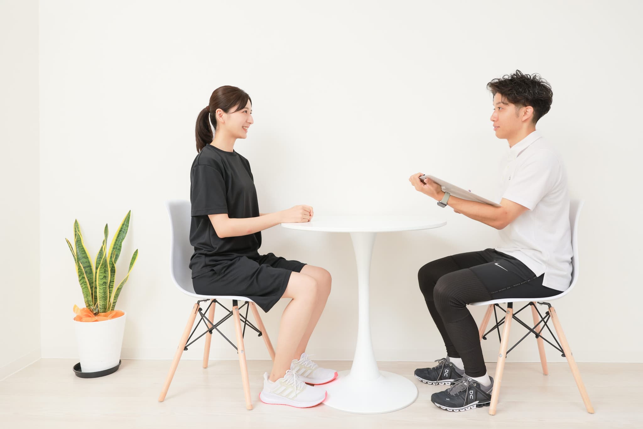 まずは体組成計で体脂肪率・筋肉量をチェックしカウンセリングへ。身体で気になっている部位、どのような理想をもっているかなど、何でもご相談ください。