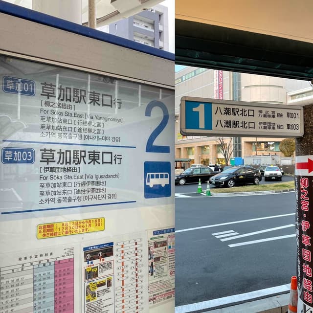 1八潮駅北口または、草加駅東口からバスに乗り、上馬場で降ります。