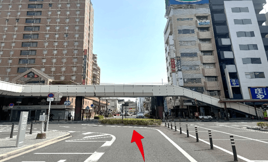 1JR高崎線 高崎駅西口のロータリーを県道31号に沿って進みます。(高崎駅を背中に直進する形です)