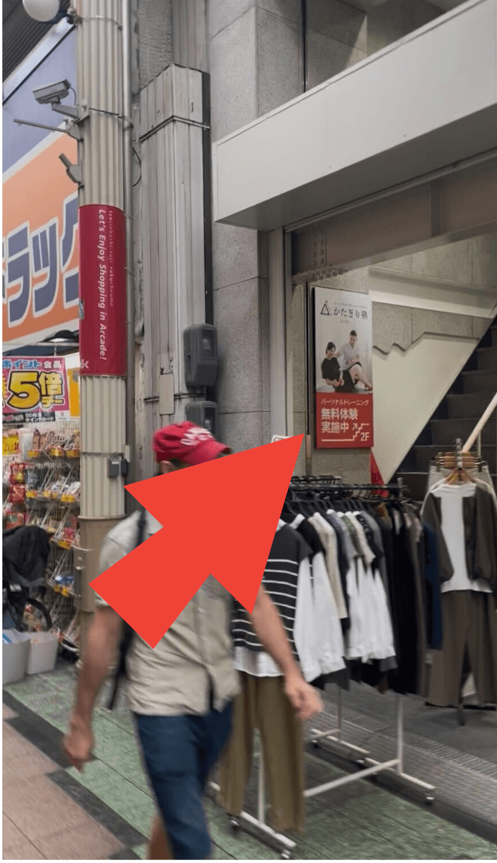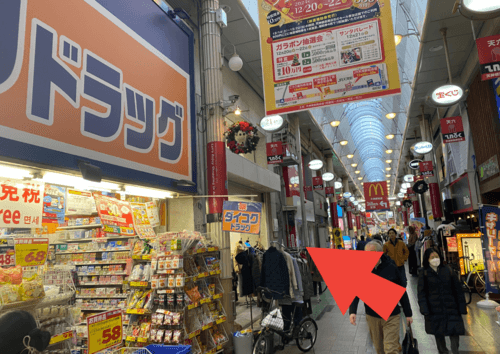3左側にダイコクドラッグ天津橋筋6丁目薬店が見えたら、すぐ隣の2Fになります