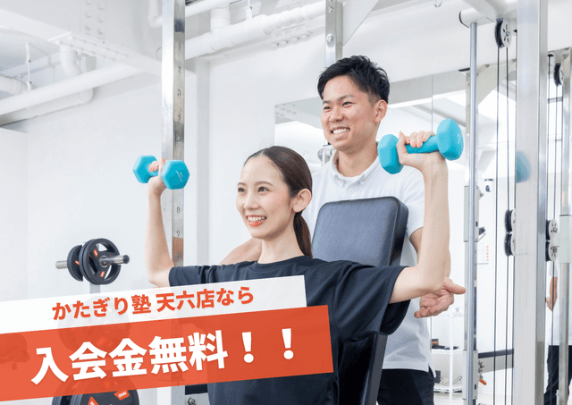 - かたぎり塾 天六店では、多店舗展開により仕入れ価格や内装費を抑えておりますため、続けやすい価格でご提供しています。ただし「トレーナー品質」「マンツーマン指導」「衛生管理」など、指導内容やサービスの質には妥協していません。はじめての方でも安心して通っていただけるよう、丁寧なカウンセリングと、お客さまの状態に合わせたトレーニング指導をご用意しています。