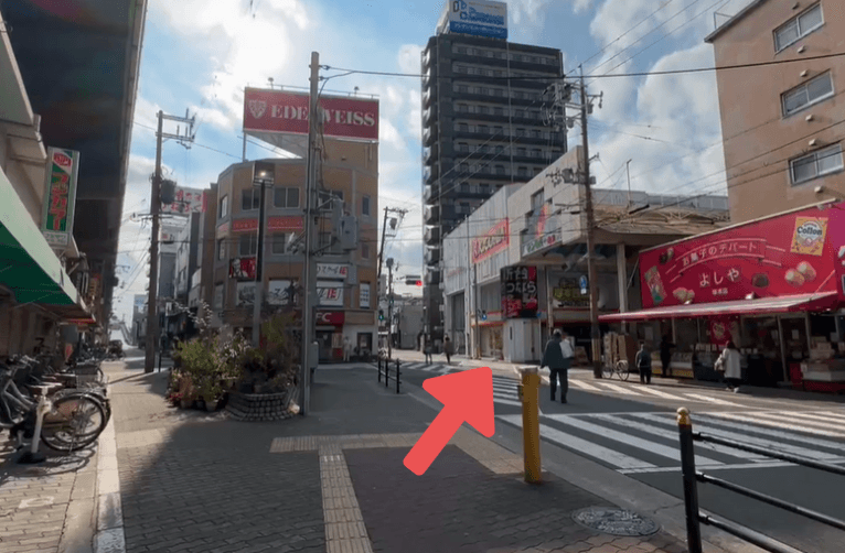 2西口出て 左側に進んだら商店街側へ信号を渡ります。