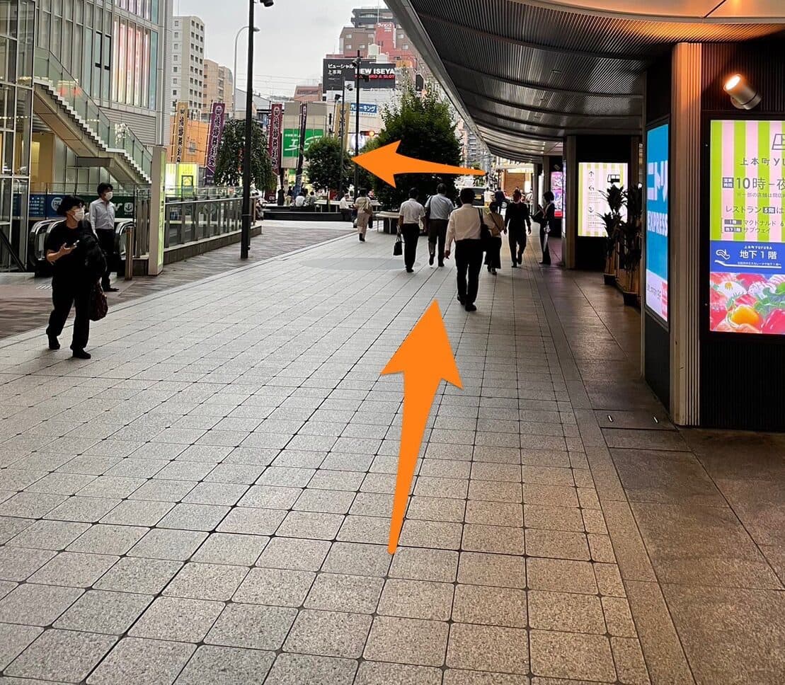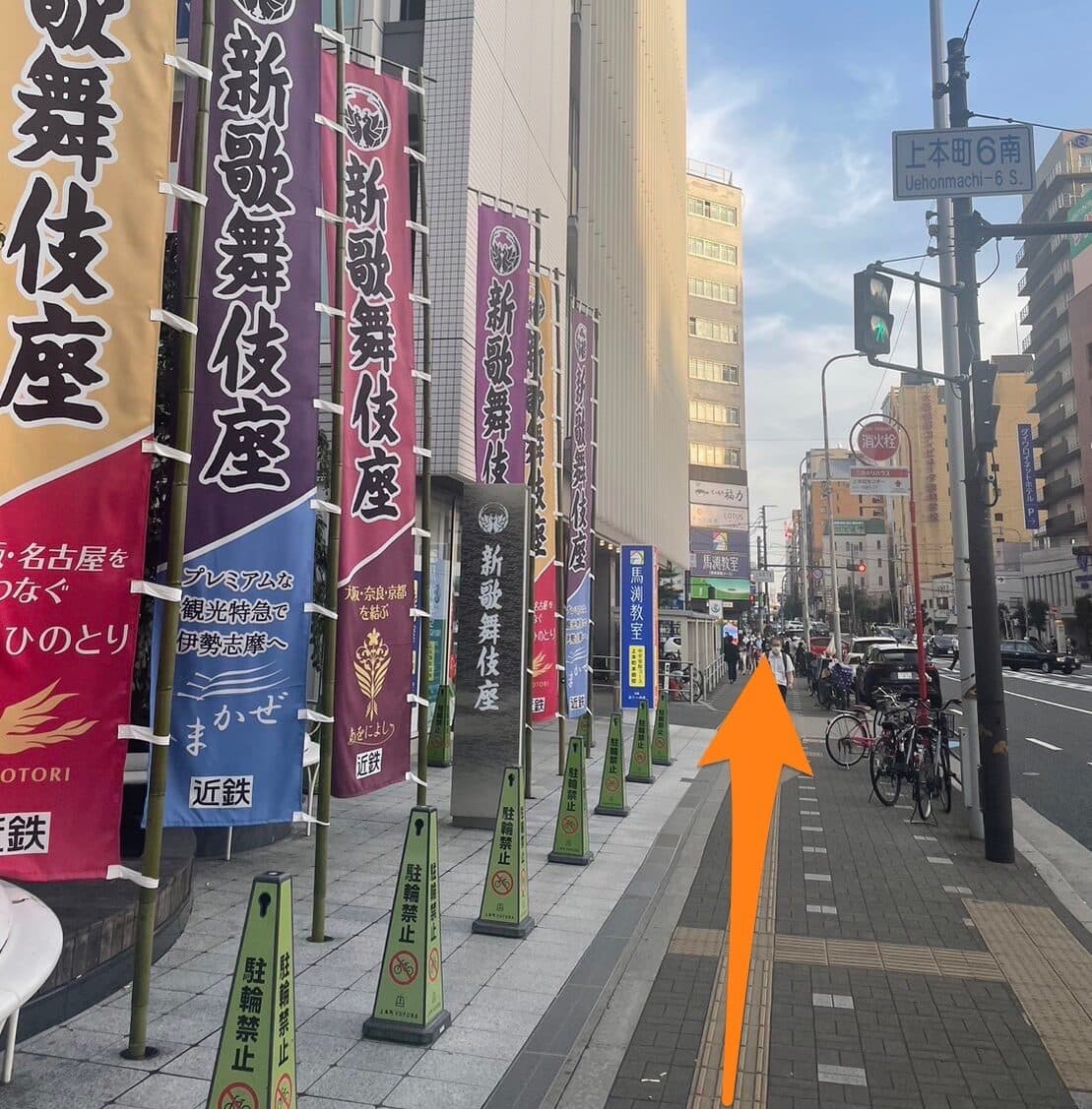 214番出口を出ましたら、エスカレーター横を直進し、上町筋通り沿いに左折します