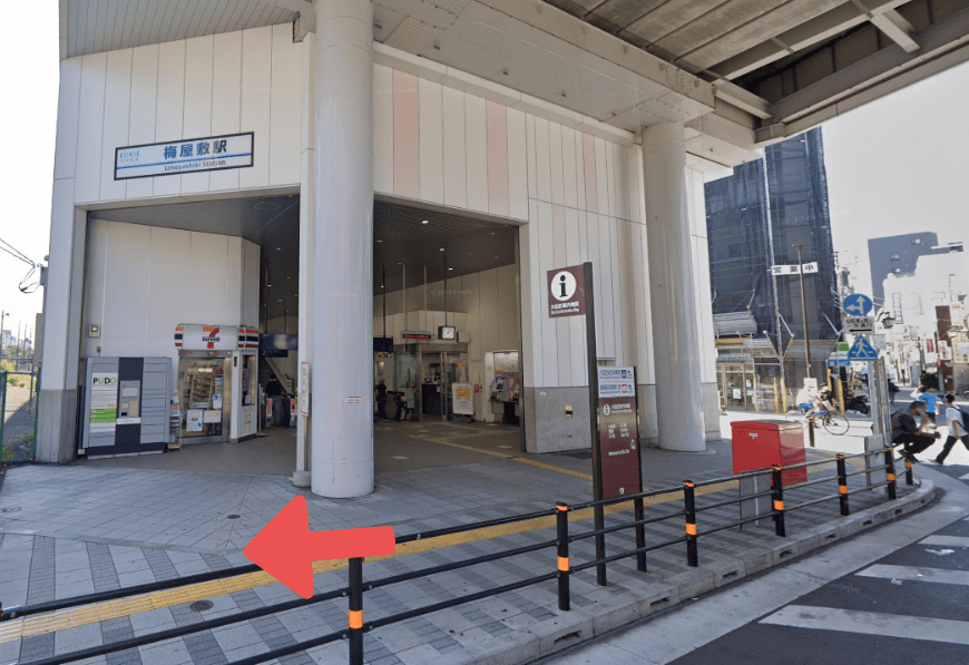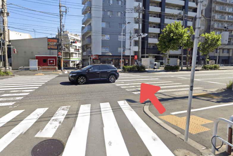 2目の前の横断歩道を渡り、すき家梅屋敷駅東店の方向へ進みます。
