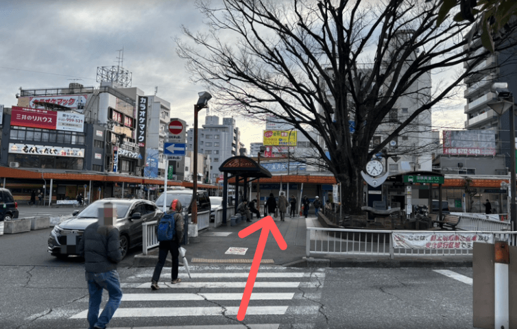4時計が見える横断歩道を渡ります