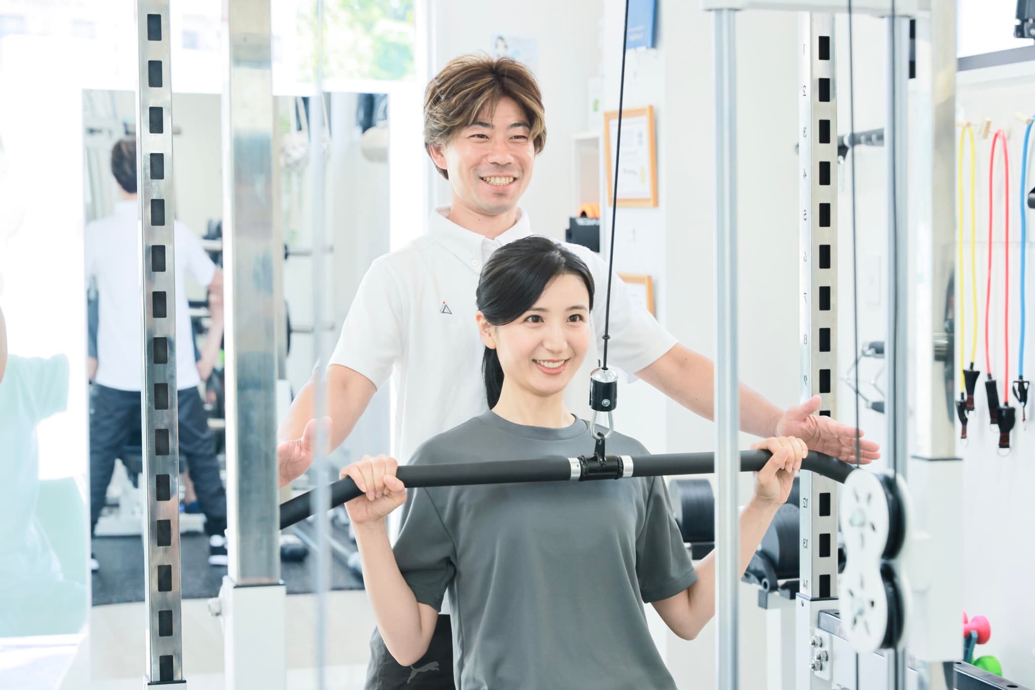 - なりたいボディラインの変化に合わせてトレーニングメニューや食事のご提案をさせて頂きますので、想定以上にムキムキになる等の心配はございません。お客様に寄り添う気持ちを持つ、熱い志を持ったトレーナーが、あなたの理想の身体作りをサポートしますのでご安心ください!