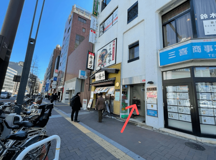 2三喜商事の手前に入口がございますので、3階へお越し頂くとかたぎり塾 四谷三丁目店がございます