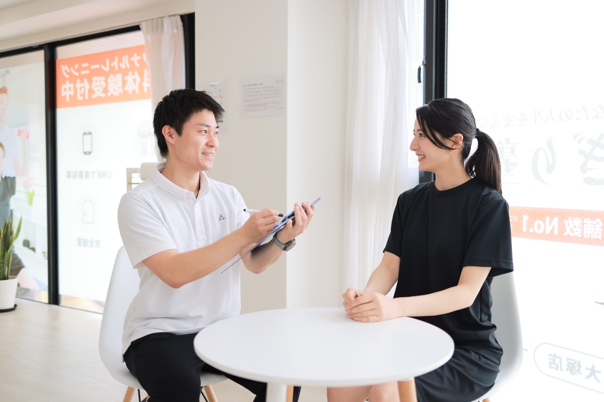 まずは体組成計で体脂肪率・筋肉量をチェックしカウンセリングへ。身体で気になっている部位、どのような理想をもっているかなど、何でもご相談ください。